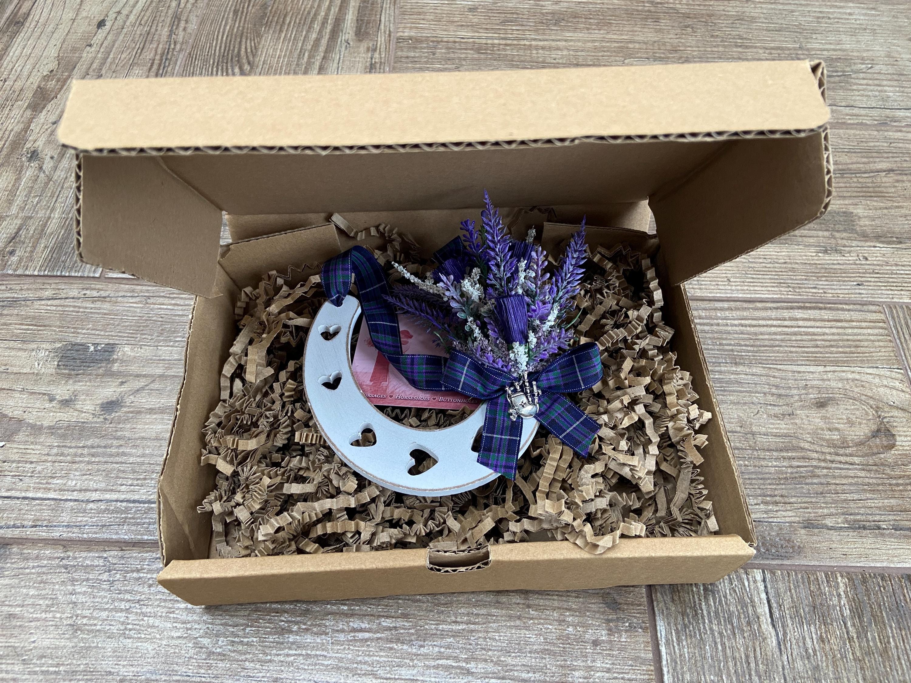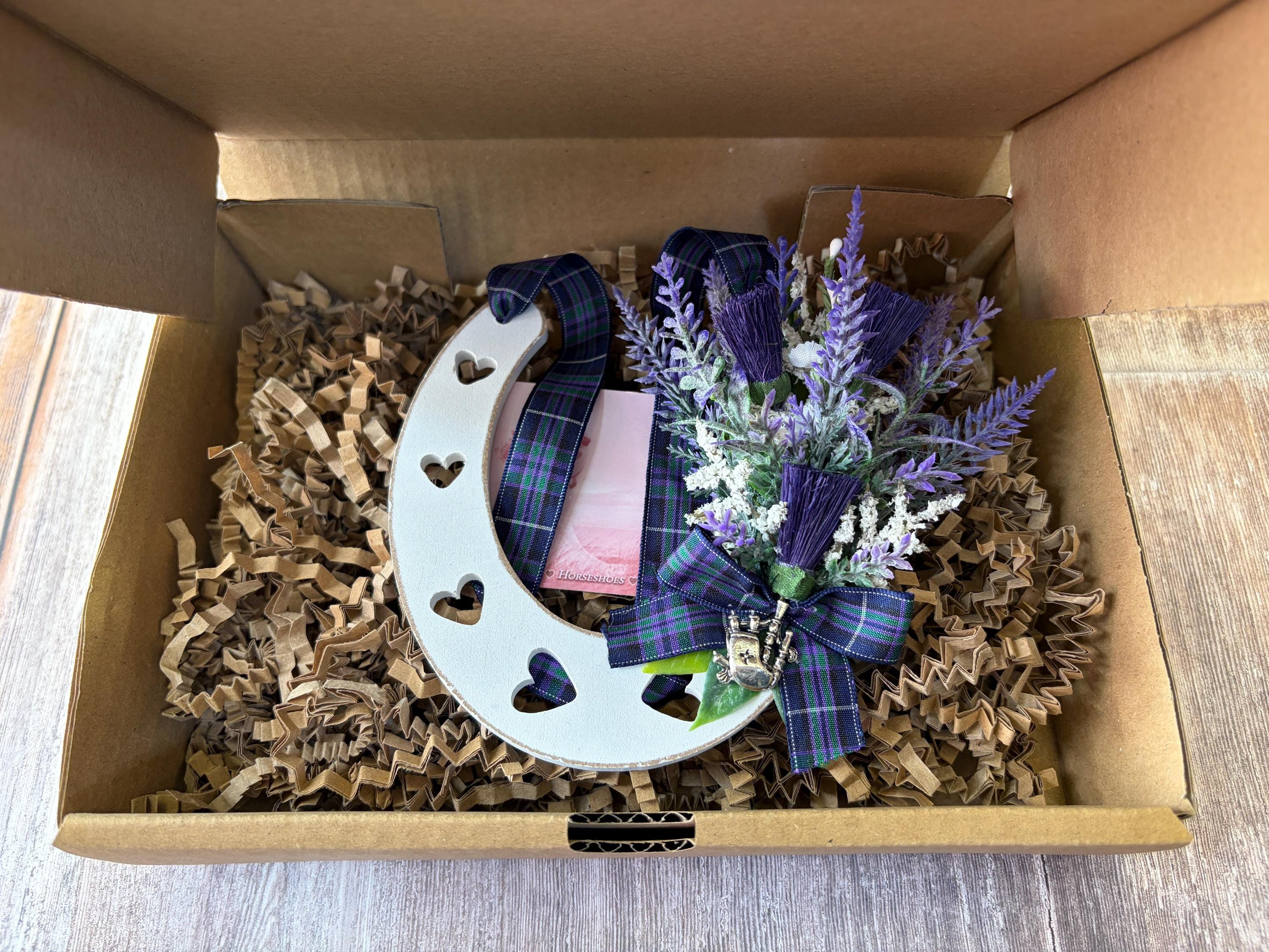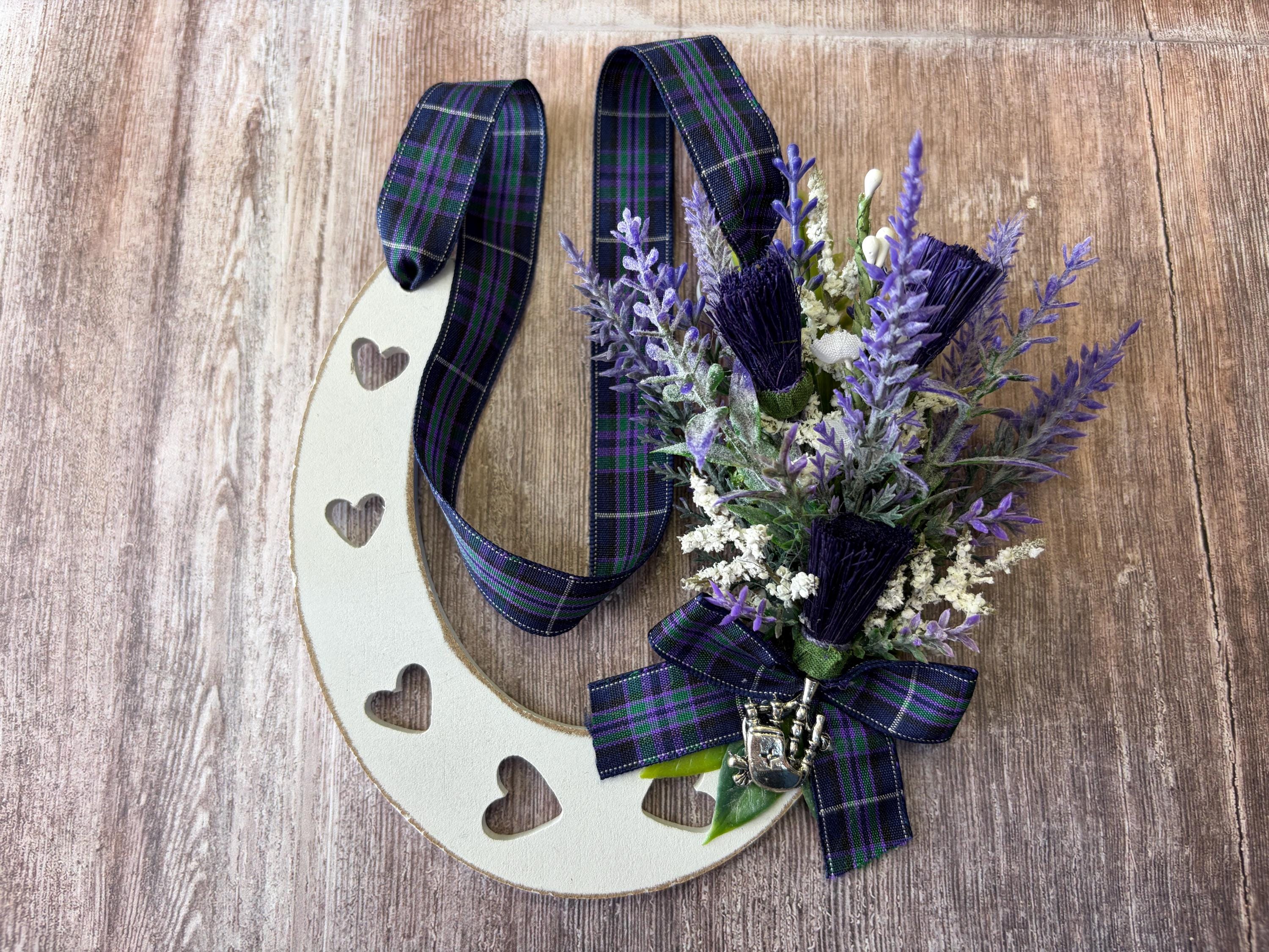 Next day delivery, can't get better than that. Delighted with horseshoe. Arlene went above and beyond to change tartan ribbon to suit clan and to post so quickly. Well crafted and thought out, you will not be disappointed. Thanks.
