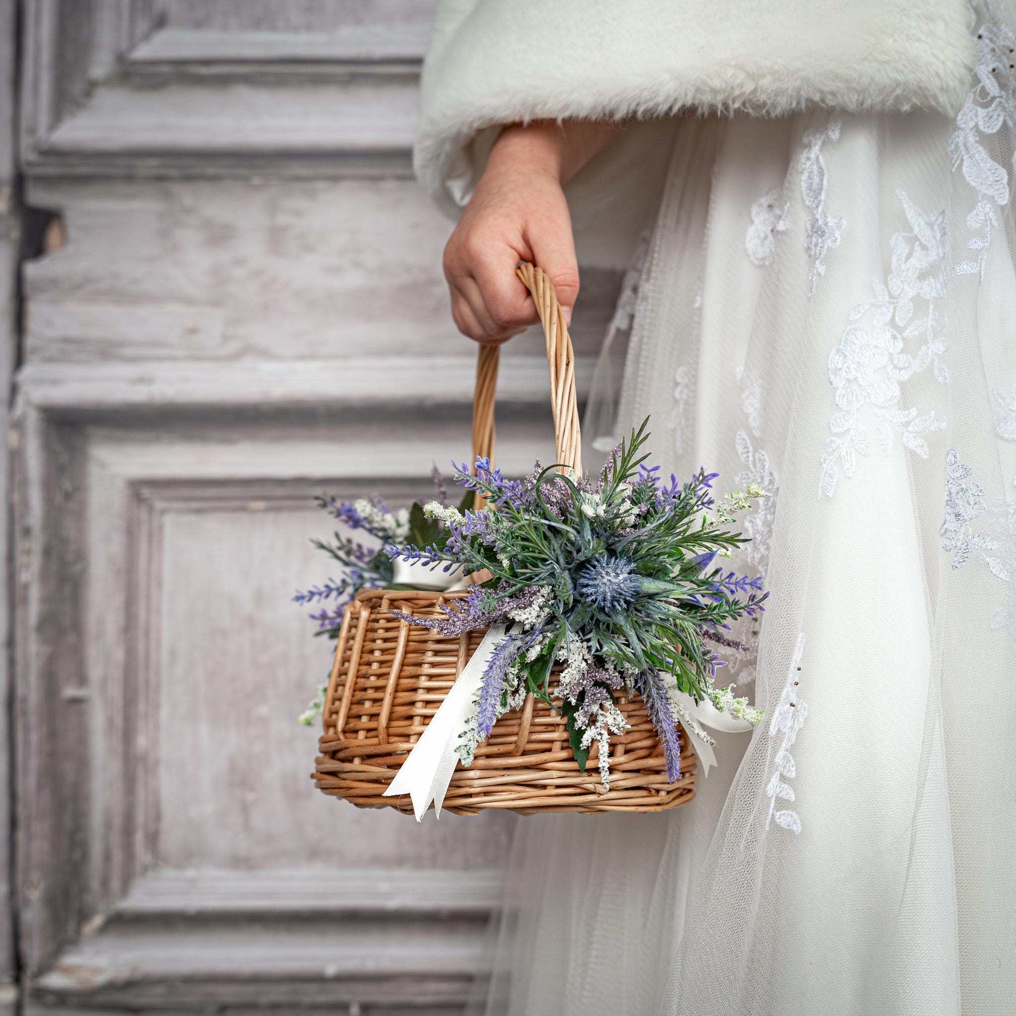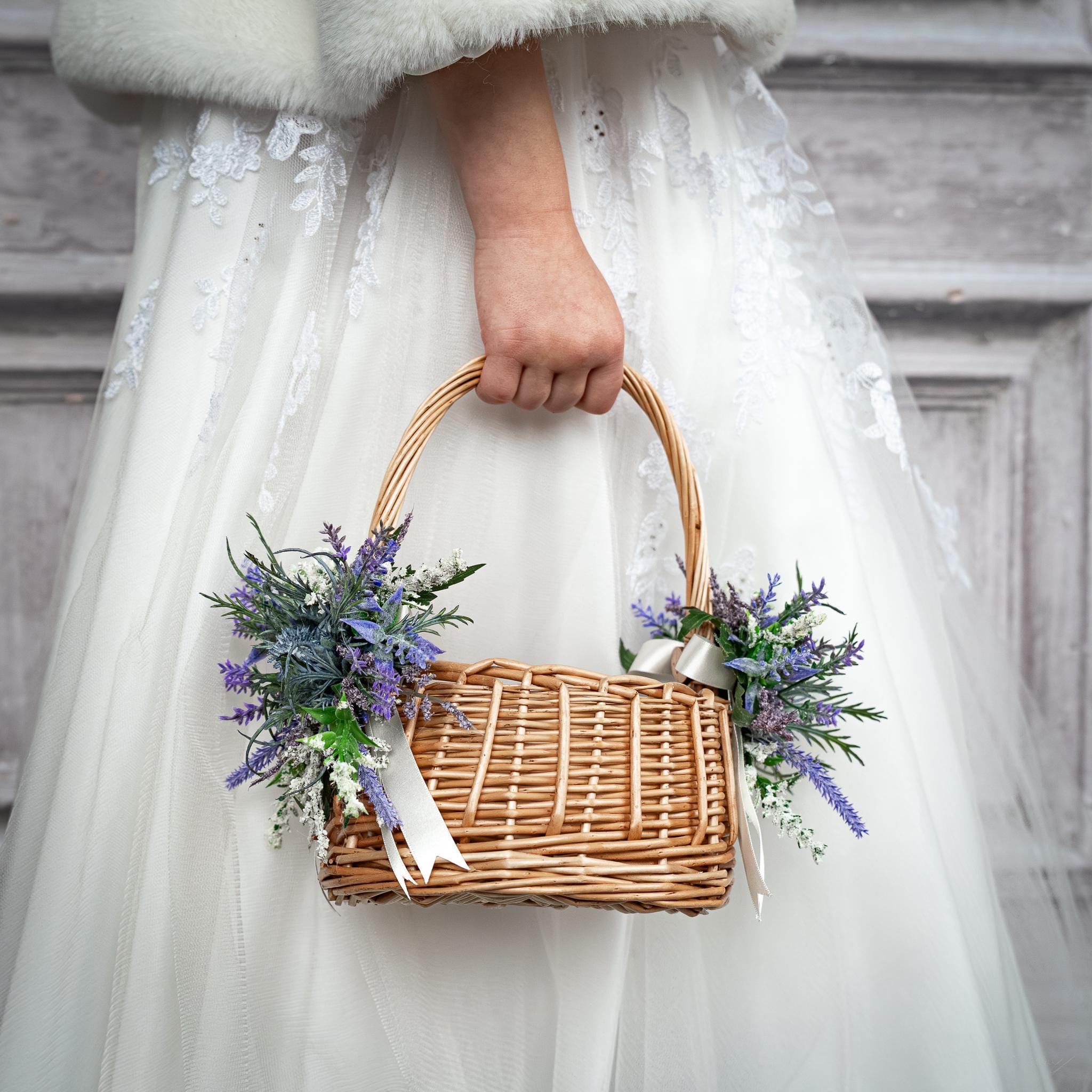 Scottish Sea Holly Thistle, Natural Wicker, Flower Girl Basket